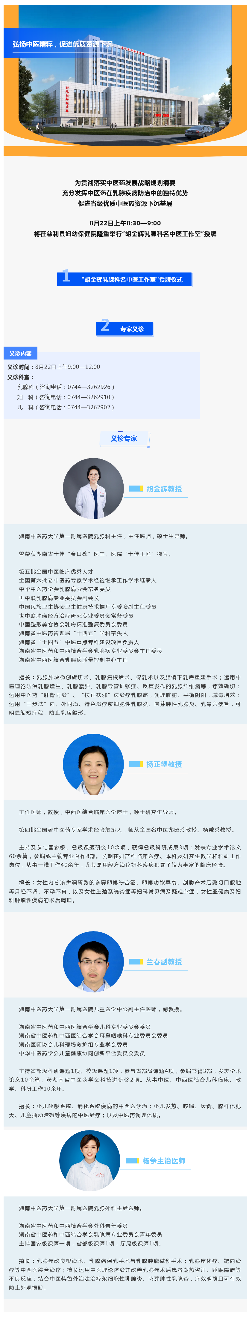【医疗盛事】湖南中医药大学第一附属医院"胡金辉乳腺科名中医工作室"授牌,名中医专家团队义诊送健康!