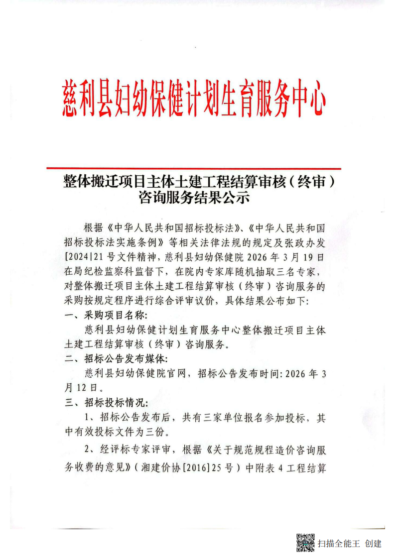 【公示】整体搬迁项目主体土建工程结算审核(终审)咨询服务结果公示